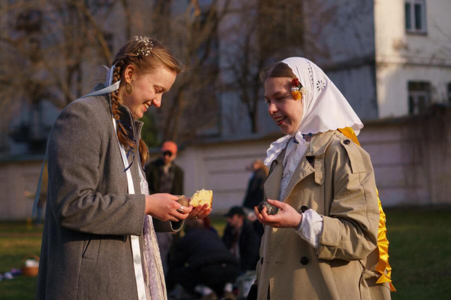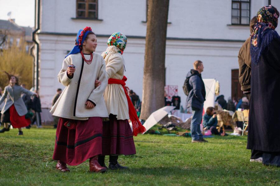 Bells rang over the reserve, accompanied by the sounds of the lira and kobza, spiritual chants, vesnianky, kanty, and psalms. Visitors arrived in festive attire, danced in circles, played with dyed eggs, ate outdoors despite the cool weather, explored works by folk artisans, and created together with them.